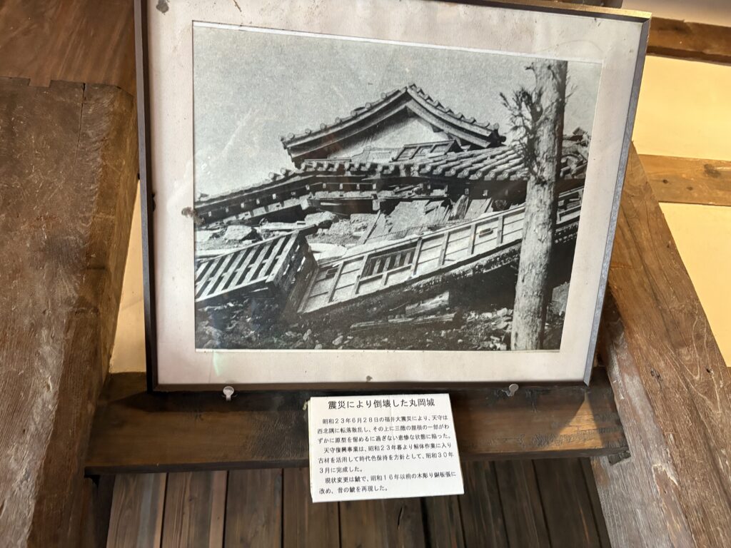 明治時代の廃城令で天守のみが残され、戦火も免れましたが、1948年の福井地震で石垣もろとも天守が完全に倒壊しました。