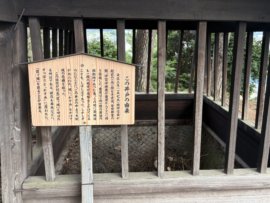 一向一揆の残党が攻め寄せてきた際、井戸から大蛇が現れ、城を霞で覆って守ったと言われています。