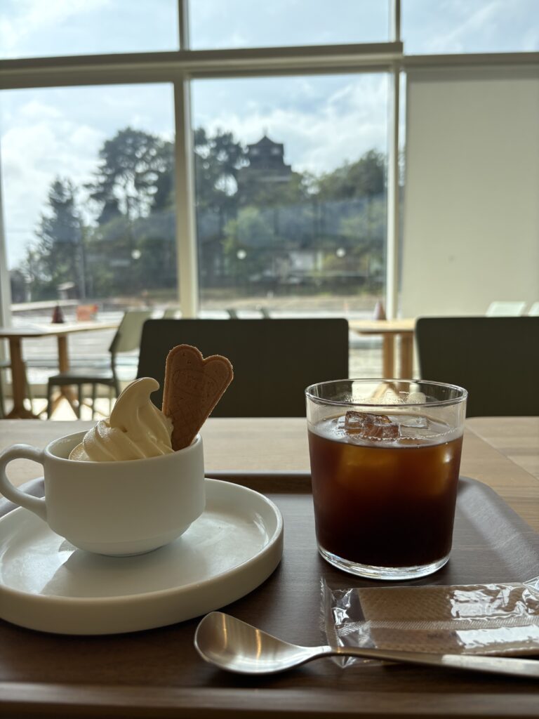 (丸岡城の目の前にあるマヨチリマーケット内にある丸やcafeで一服しました。)